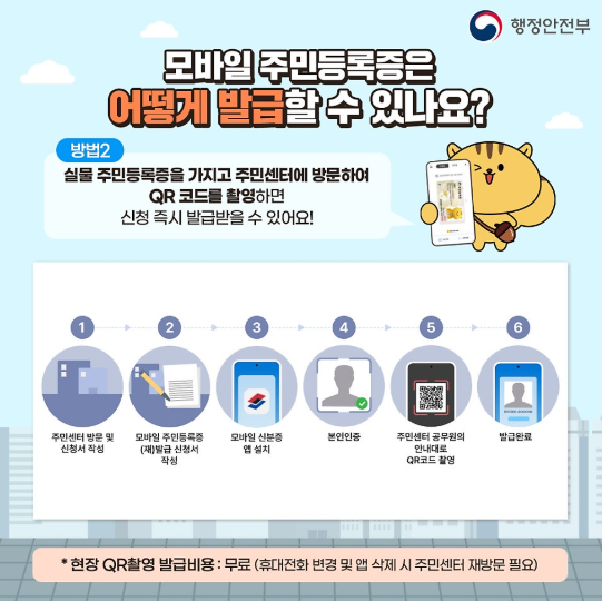 - 재발급을 위해 기존 주민등록증과 스마트폰 지참